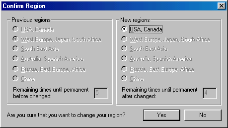 You are given 5 chances (less if your DVD ROM drive has already been changed) to select a region. Before you select your last regional setting you will be given one additional last warning: