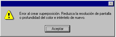 | Es posible en algunos casos se produzca un error que indica que no se ha podido crear la ventana de vídeo. En tal caso, será necesario reducir la resolución, la frecuencia de actualización o la profundidad de color para reproducir el vídeo. Este problema se produce si la tarjeta gráfica no tiene suficiente memoria para visualizar vídeo en el modo de pantalla en el que se está intentando reproducir, o bien si no puede reproducir vídeo en una configuración de pantalla determinada.